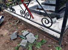 Далее мы установили памятники с цветниками, параллельно приварив необходимые для покрытия брусчаткой металлические борта к ограждению и закрыв территирию участка геотекстилем.
