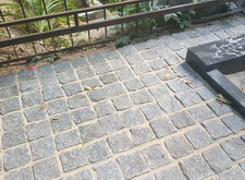 На данном объекте нам надо было отремонтировать некоторые элементы места захоронения, положить брусчатку и заменить одно из надгробий.
