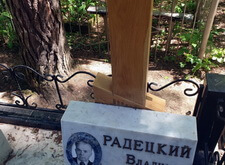 Так выглядело место захоронения на момент окончания работы: деревянный крест покрыт защитным раствором; мраморные изделия отшлифованы и покрыты гидрофобной субстанцией, стыки элементов промазаны белым герметиком; полые столбики, восстановлены; в цветнике заменена земля и посажен газон.
